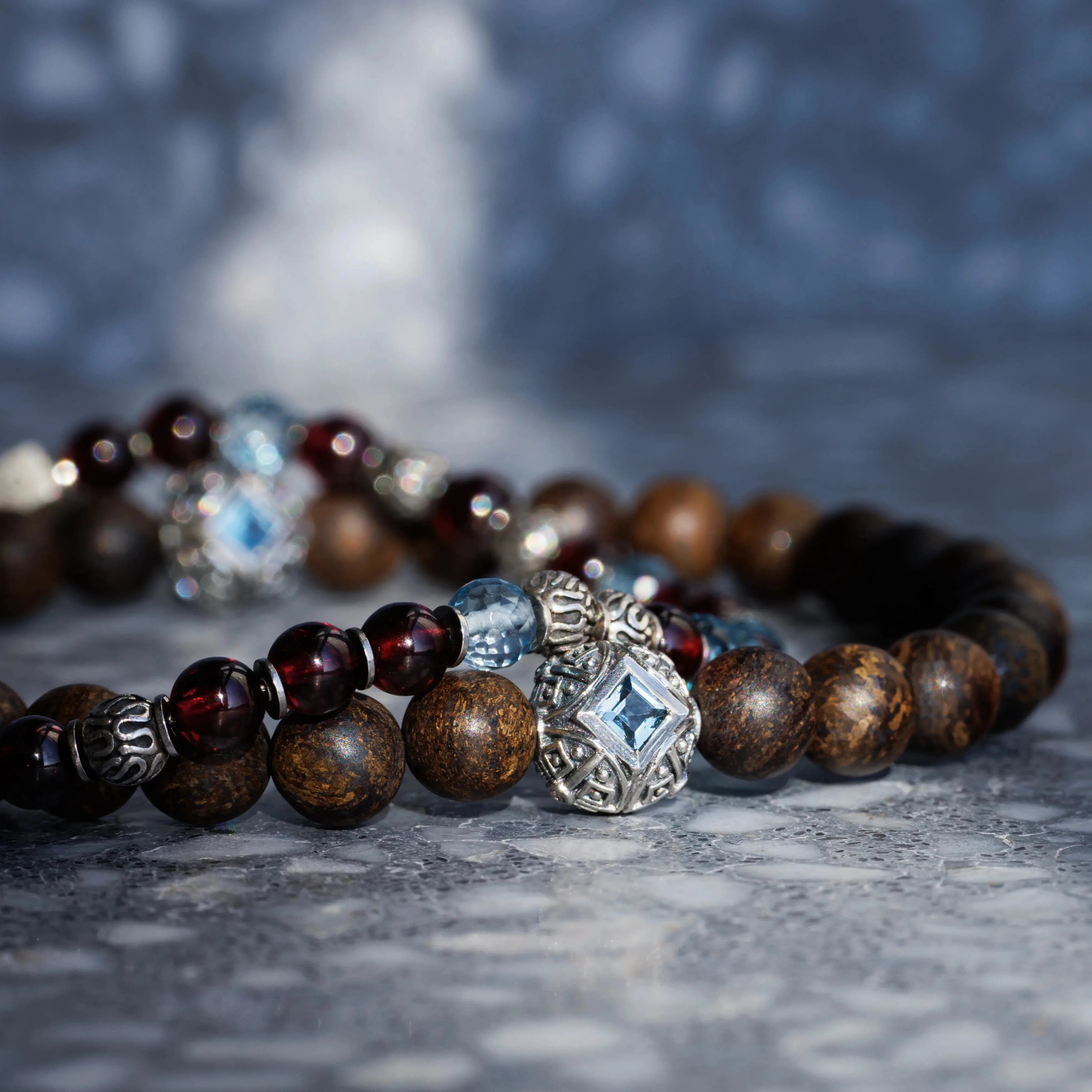 "title": "Paladin Swiss Blue Topaz - Matte Bronzite Bracelet I (6mm)",