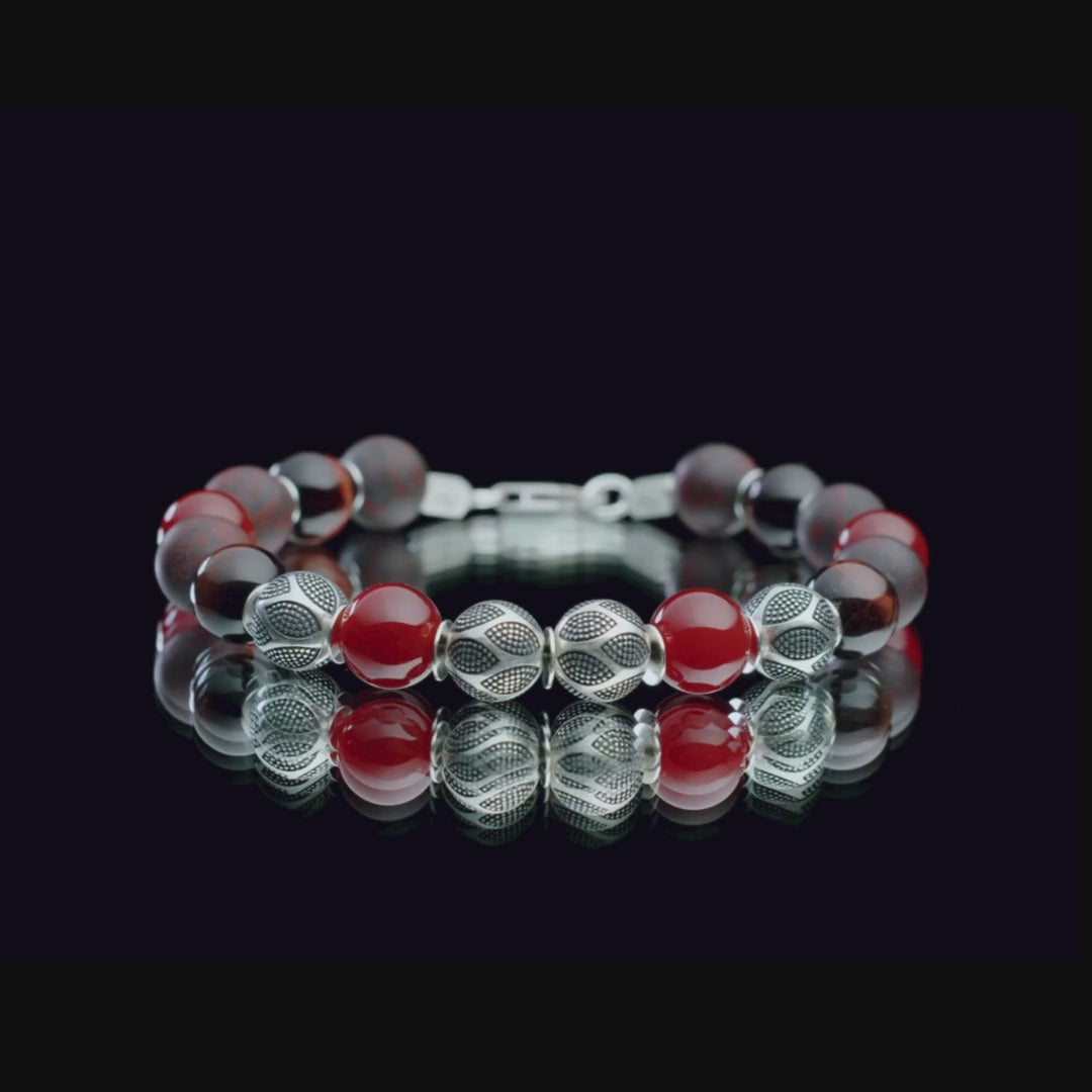 Introducing the Mixed Red Nascor Bracelet I (10mm), a stunning piece of jewelry that's perfect for adding a touch of sophistication to any outfit. The bracelet is finished with a silver lock combination. This bracelet is exclusive, making it the perfect statement piece for those looking for something truly one-of-a-kind.