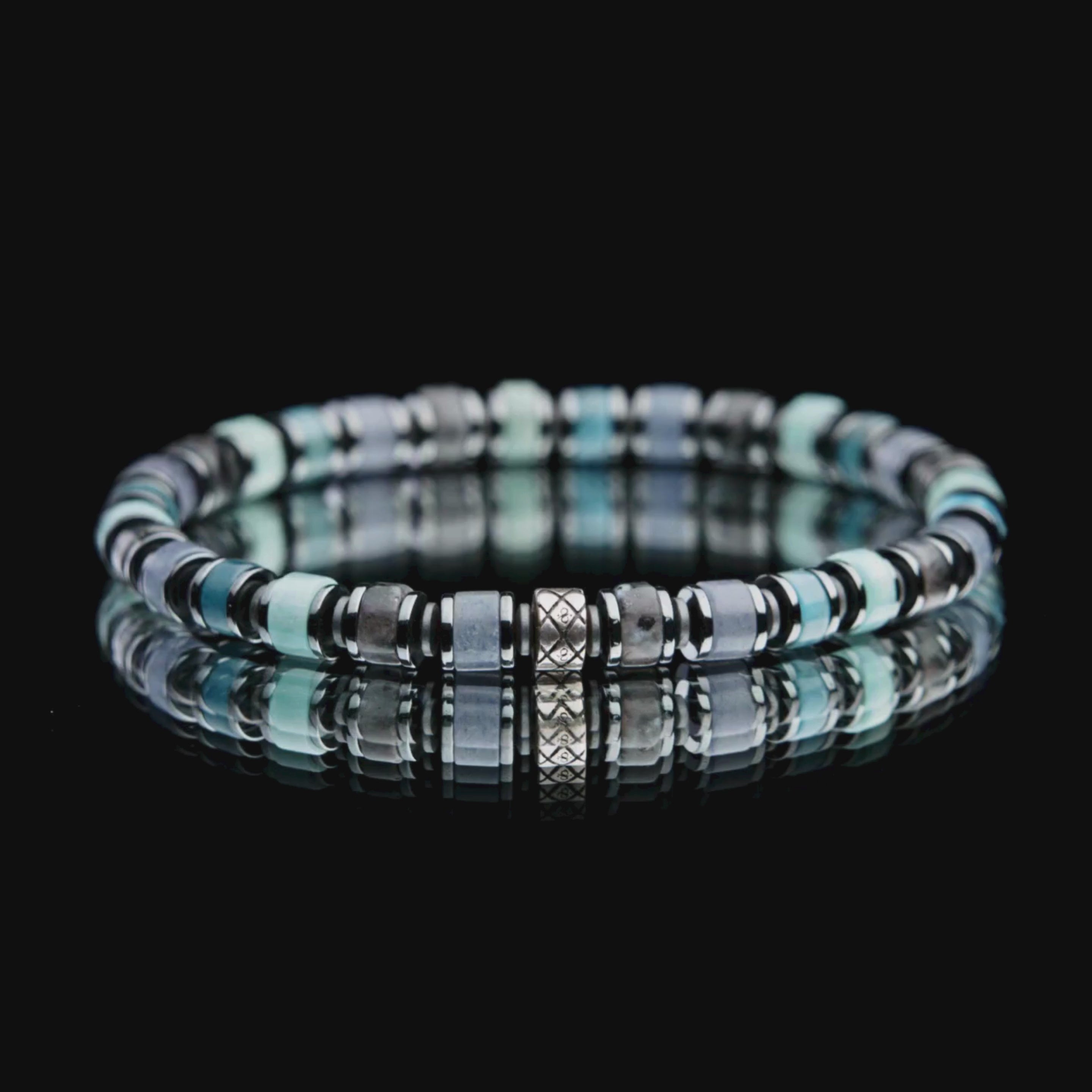 Complete your outfit with our Amazonite, Aventurine, Apatite and Labradorite bracelet. Handcrafted in The Netherlands by professional artisans with the best Nature has to offer and finished with 925 Sterling Silver.