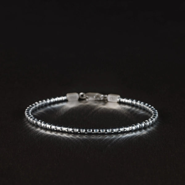 Delicate and refined, featuring 2–3 mm stones. Best worn in pairs or combined with a small-bead bracelet.