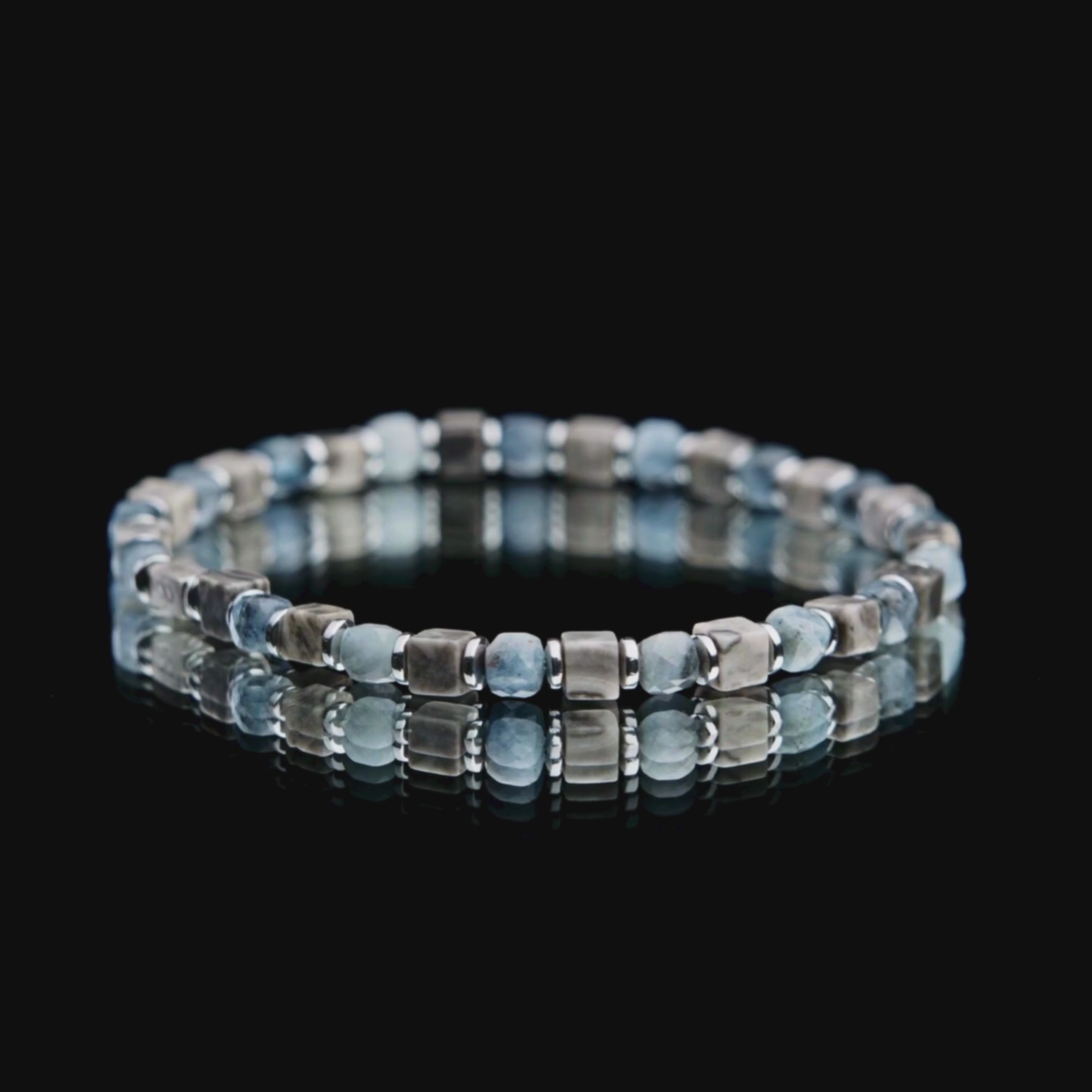 Complete your outfit with our Picasso Jasper & Aquamarine bracelet. Handcrafted in The Netherlands by professional artisans with the best Nature has to offer and finished with 925 Sterling Silver.