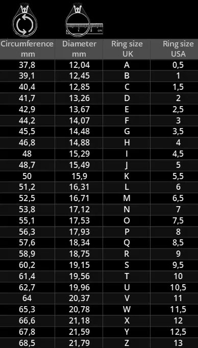 - Use the Size Chart: Compare the measured length to a ring size chart. You can find online ring size charts provided by jewelers or use a printable one. The chart will match your measurement to the corresponding ring size.